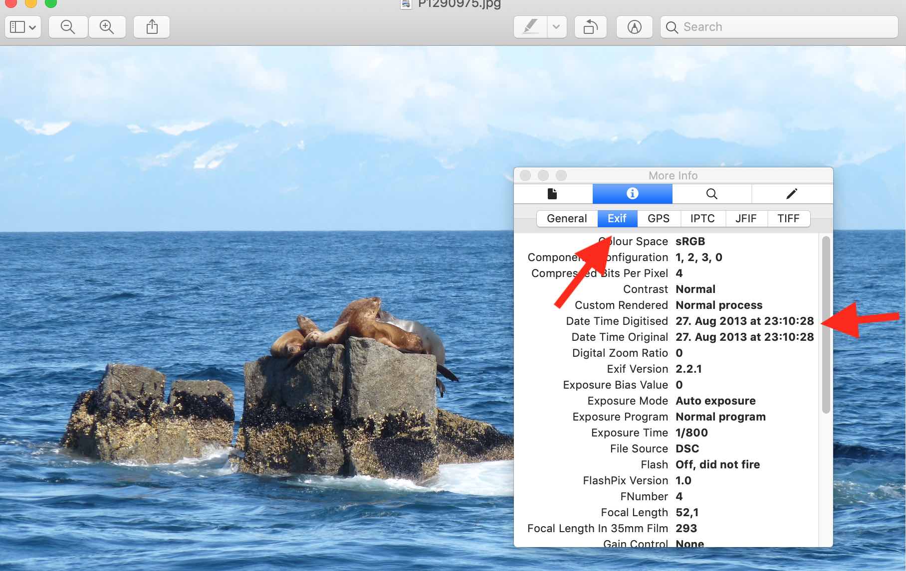 correct picture taken info