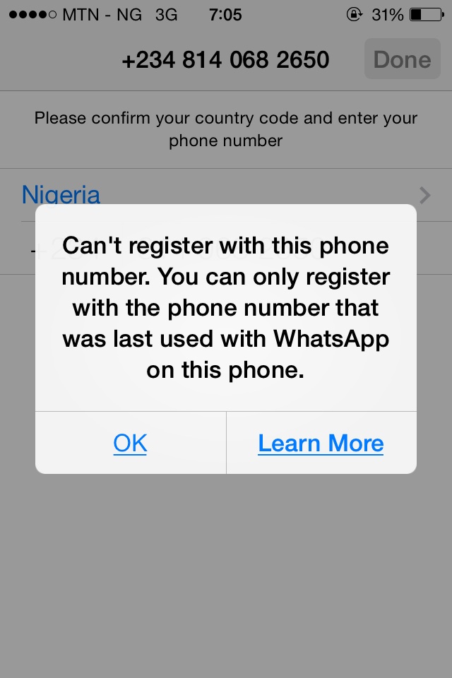 I can not register my number for whatsapp on my iPhone4 since I restored the phone August 15 2018. My device has been claiming I can only sign in Whatsapp with a number that was previously in use on the phone? I don't know what to do about this?