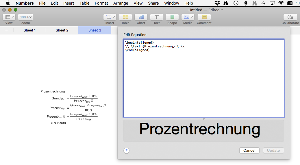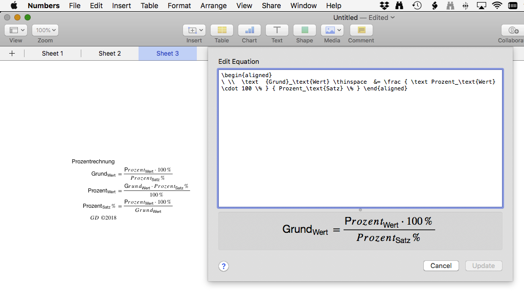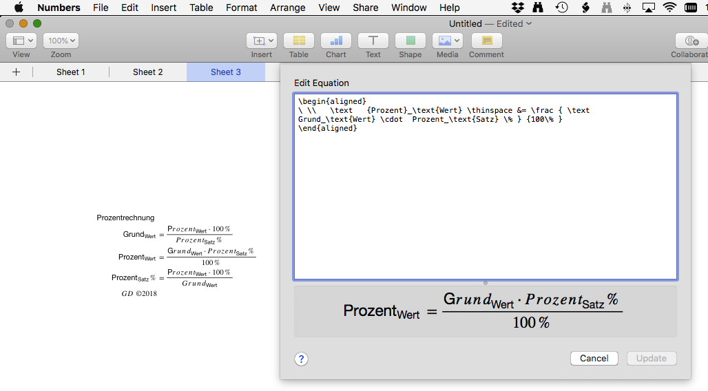 \ \\ \text {Prozent}_\text{Wert} \thinspace &= \frac { \text Grund_\text{Wert} \cdot Prozent_\text{Satz} \% } {100\% }