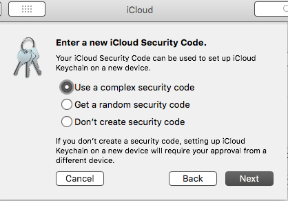 Check box the second option get a random security code , and click on next , so how to change the security code in Mac OS high Sierra 10.13.6 , any suggestions .