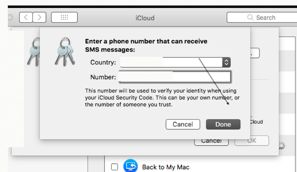 I open system preferences > iCloud > the box for keychain is checked > click on options > allow approving with security code is checked click on change security code , do not enter the six digit code .