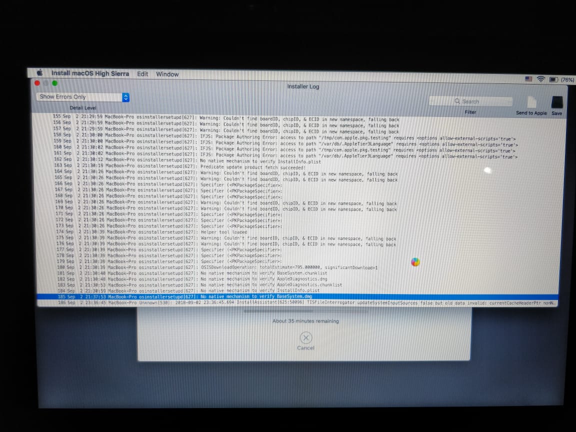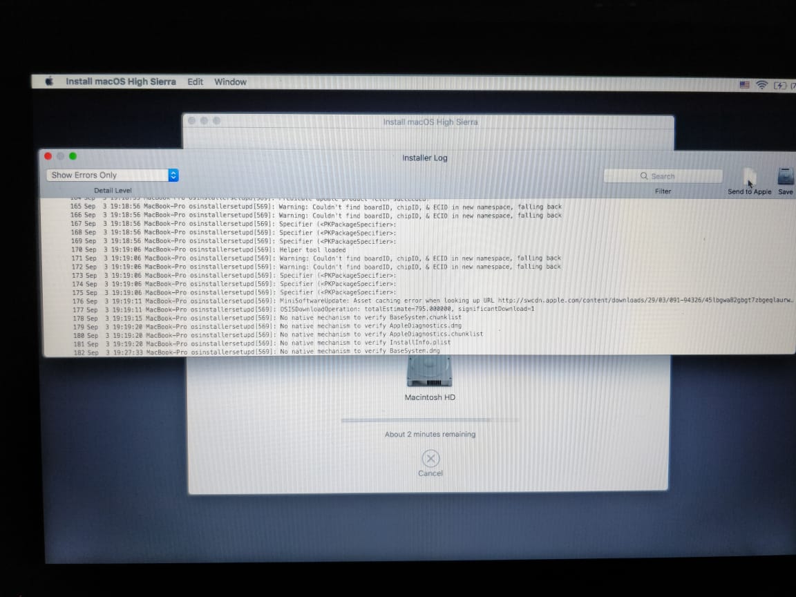 - Restart the computer. Immediately after the chime hold down the (Command-Option-R) keys until a globe appears.