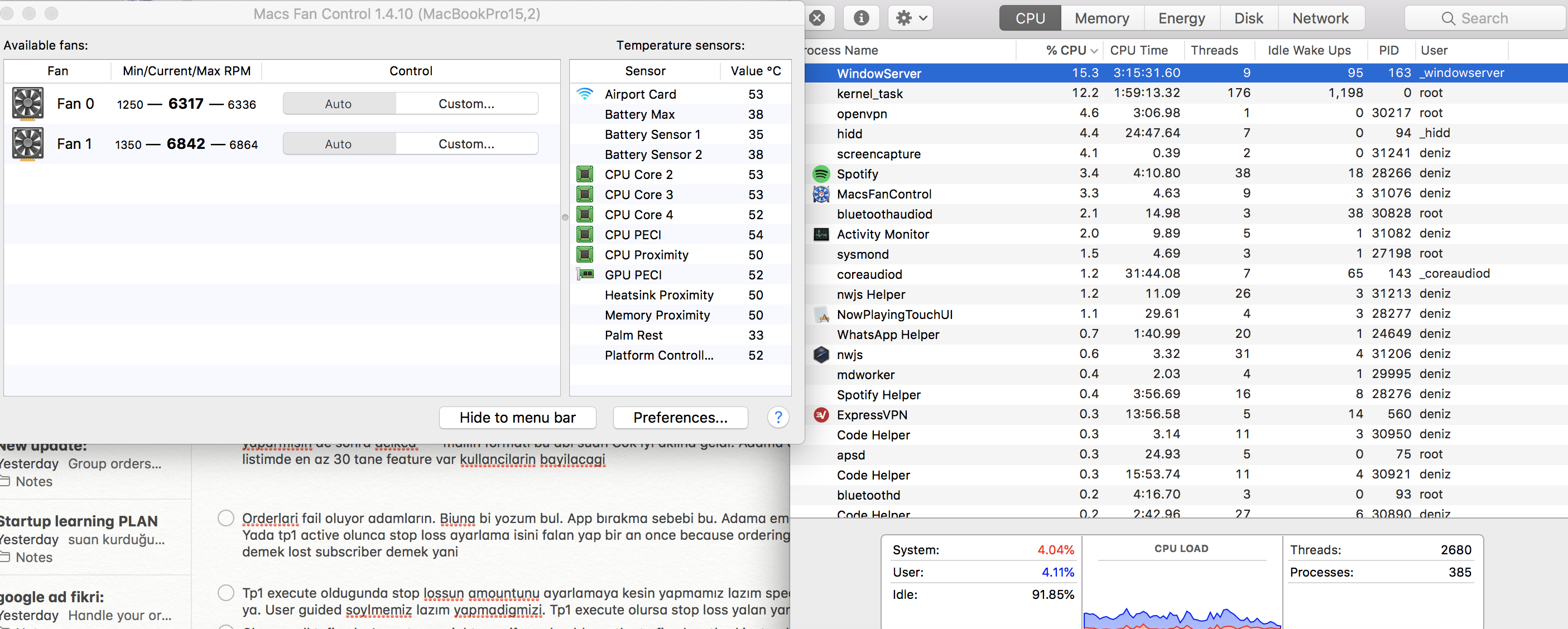So the biggest issue with this computer is that even under very light load, it overheats. Like the palm rests become uncomfortable because they are too hot, and don't even get me started how it feels if I use it on my lap. I literally have to wipe the computer every 10 minutes because of the sweat caused by hot palm rests. I got the same issue with the first Macbook Pro 2018 I bought, I then got it replaced, but there is no difference at all. Before touching on every issue, let me show you some proof that this computer's cooling system is not working properly. Writing this post, I am very uncomfortable because of the heat on my legs.