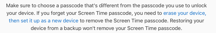 2) My screen lock pass code is 6 digits, while the Screen Time pass code is 4 digits, so the ST pc default is not the same as the screen lock pc.