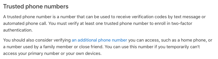 Pay particularly close attention to thoughtfully selecting and setting up Trusted Numbers … these become critical when you need to regain access to your account (e.g. lost, damaged, or stolen device).