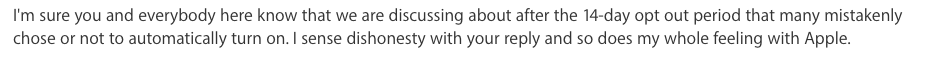 The Apple hosts will never guide them to the terms and attempt to provide context on why their demands aren't being met here.