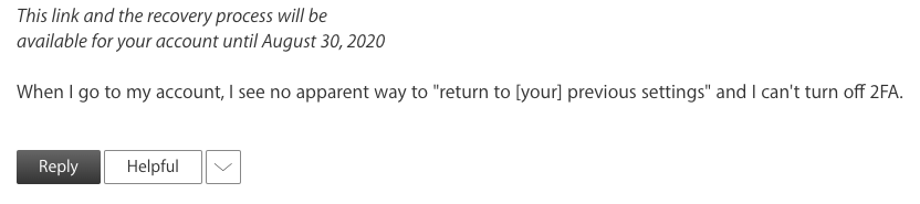 I did unfollow but for some reason it’s still sending emails. I did change preferences also but hate to disable the entire email portion because of this one post. I appreciate your response and have paid great paid great attention to it. It’s part of original response. I see how hard you are all working at providing the appropriate responses on a technical level, which of course is the purpose here. I can’t imagine how hard it is to be in this position. This post has been going on forever. I know you’re all doing your best and that you are continuing to provide feedback and direction is to be noted. Some people that are actually struggling with some features that become overwhelming, regardless of education level or anything else, tend to create anxiety which leads to it being hard to readjust and try again. Apple featured can be confusing. You’re not here to analyze or guess what might be contributing to difficulty in trying all troubleshooting solutions available, unfortunately these things can contribute for some User’s that are genuinely trying to problem solve. It must be frustrating. This entire post is filled with comments and posts that need to be presented elsewhere ( has you have provided links to). Those channels are effective. I can’t offer details, but when you try, try and try again you can get people to listen , using those channels and help is available. I’m proof. My devices are the unicorn. I can’t get help here right now. Hopefully later. I do appreciate all of your experience. I will add ( to validate this post) that I like 2FA and have not had any issues at all. It’s a feature I have appreciated.