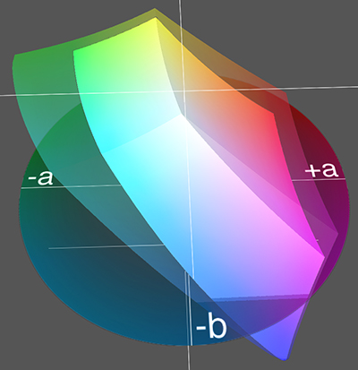 The very basics of color management: L*a*b* is everything we can see. This is the fixed model all color management is based on. The current being CIE Lab. It's usually visualized as a sphere. All possible color from white at the top to black at the bottom, surrounded by all fully saturated primary colors reducing to fully desaturated gray down the middle.