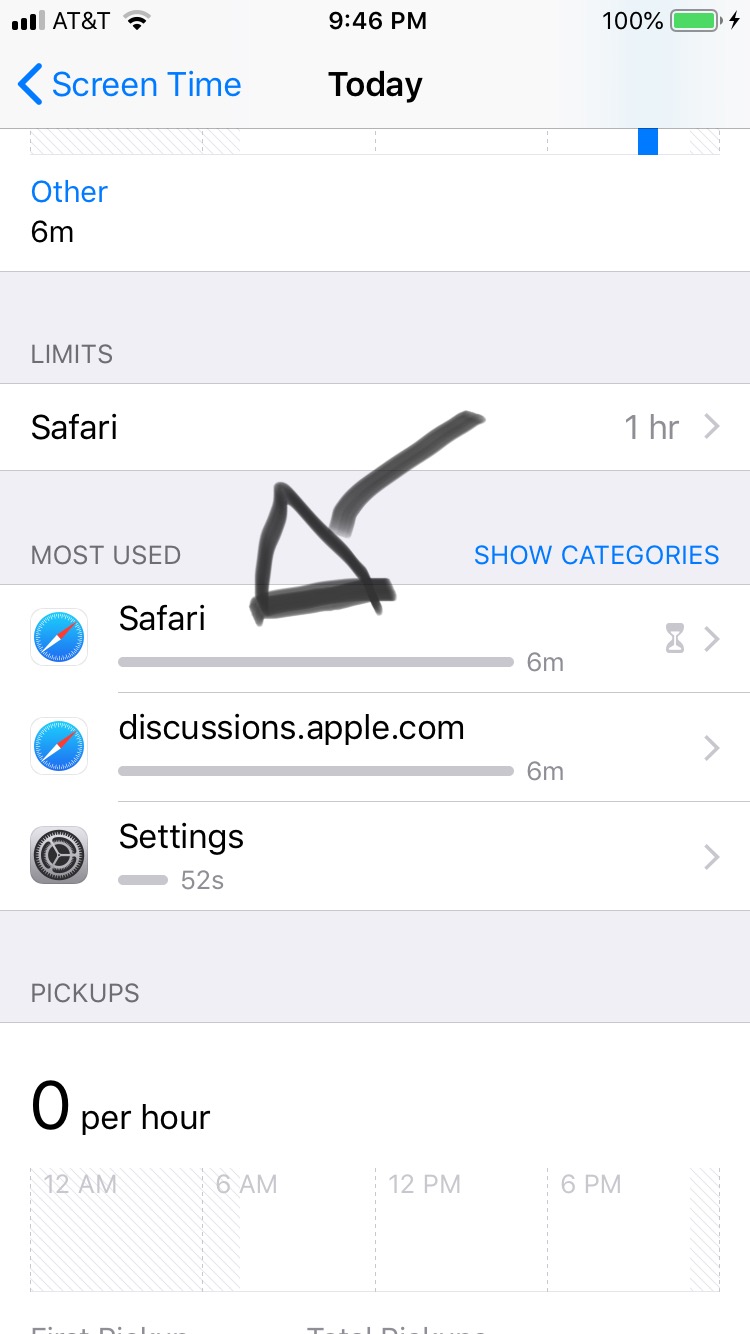8. Scroll down to where it says Most Used and to the right it will either say “Show Categories” or “Show Apps & Websites” in blue lettering.