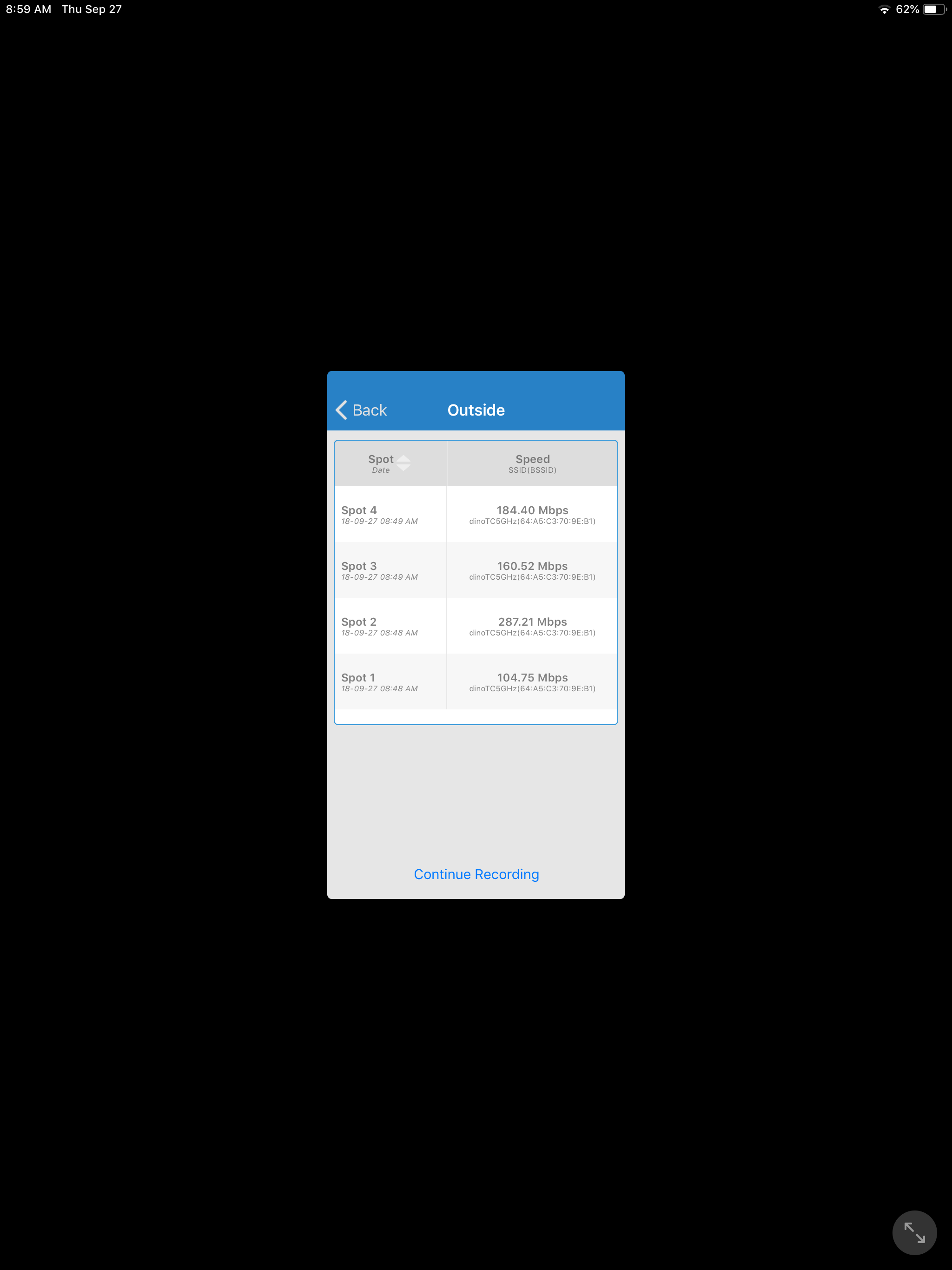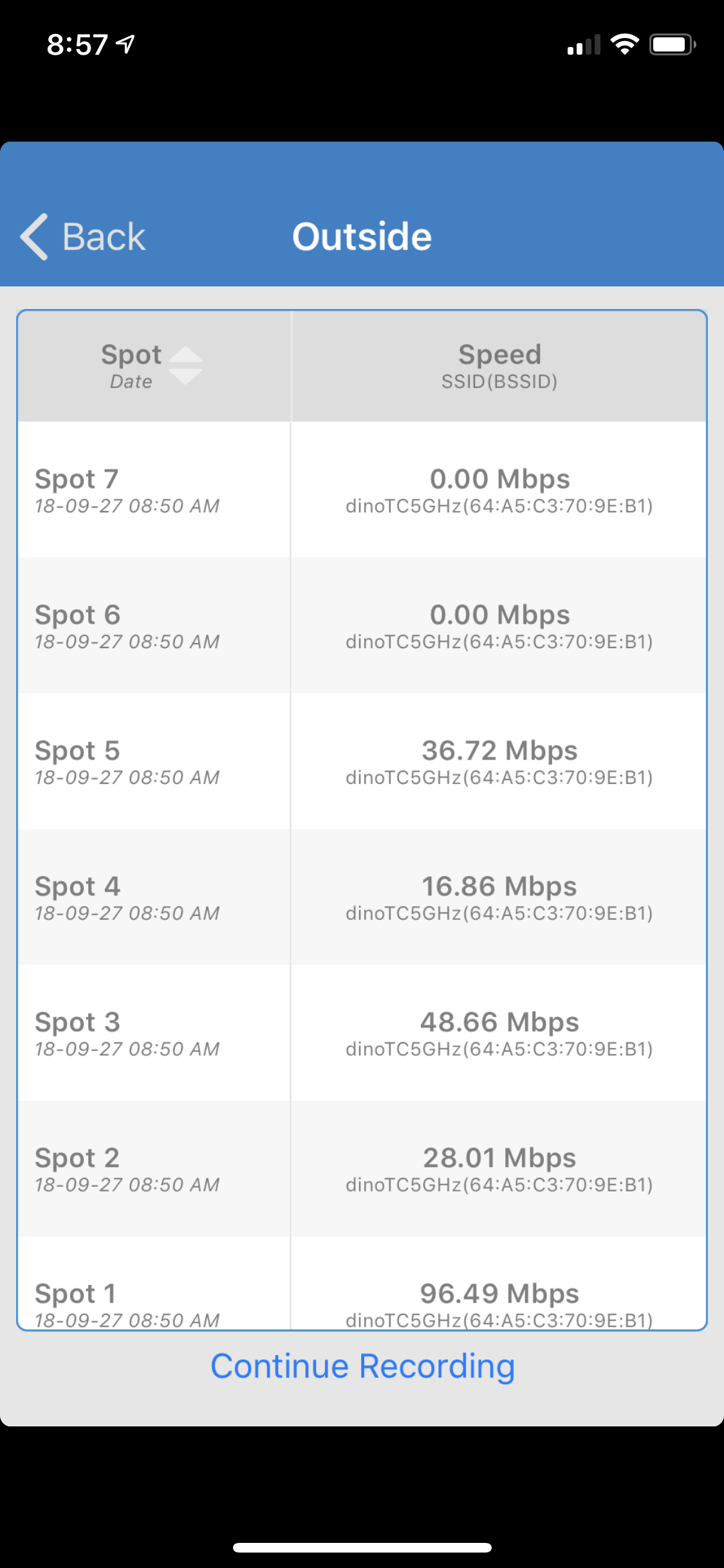 Notice the Xs starts at half speed of iPad Pro (spot one) and drops quickly to half of that about 28-48 MBS and then drops all way to 0 and I loose connection with the 5ghz (never happened with X and earlier iphones)