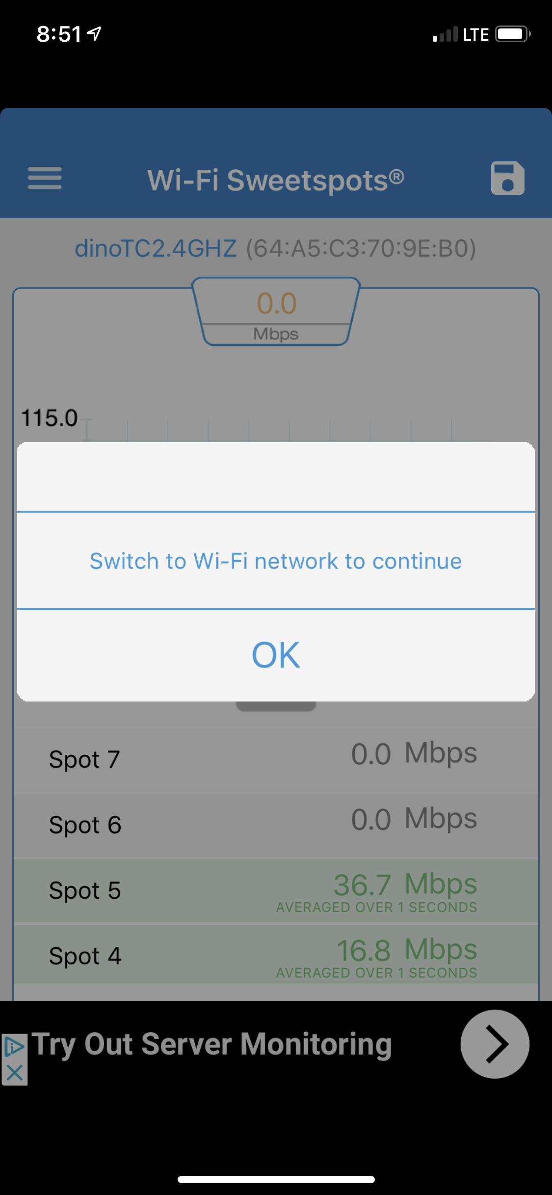 For accurate results, use the Wi-Fi scanner on a dedicated device that’s the same model as the iOS client.