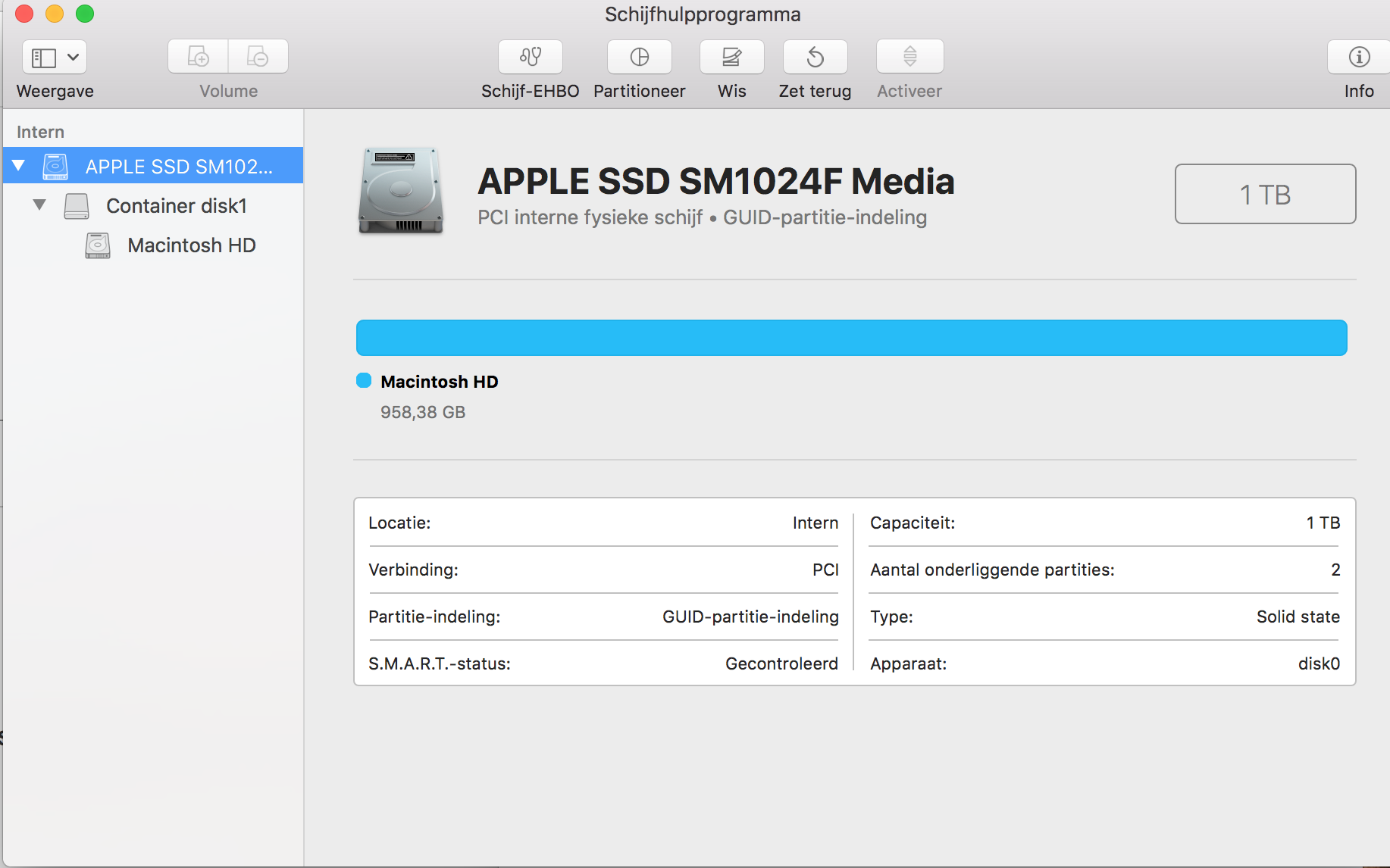 2: Apple_APFS Container disk1 958.4 GB disk0s2