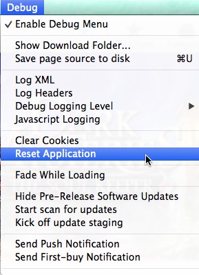 3 - launch App store and select the Debug ➙ Reset Application option: