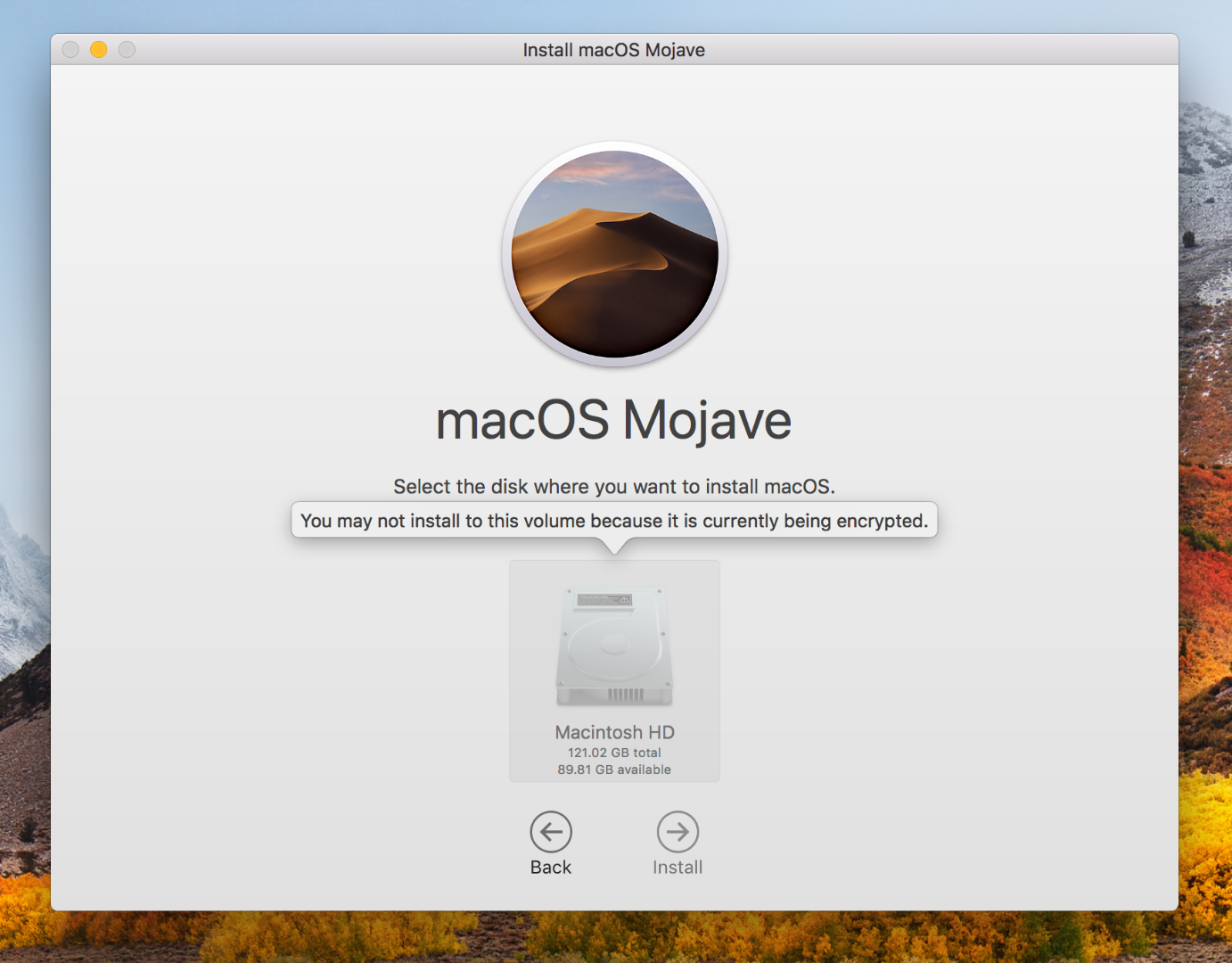 I cant install my mac into mac mojave coz m having problem of encrypted if i click the disk so what to do plz help me i want to install mac mojave