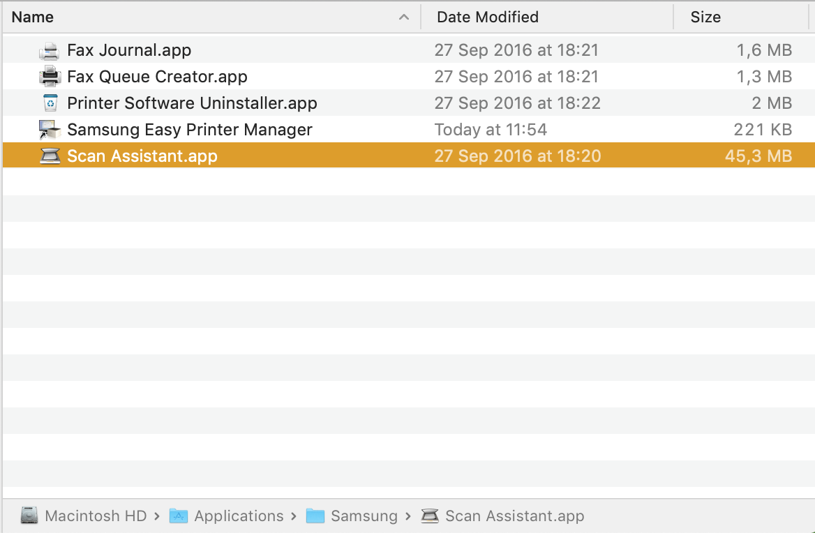 on mine computer it is located here: /Applications/Samsung/Scan Assistant.app