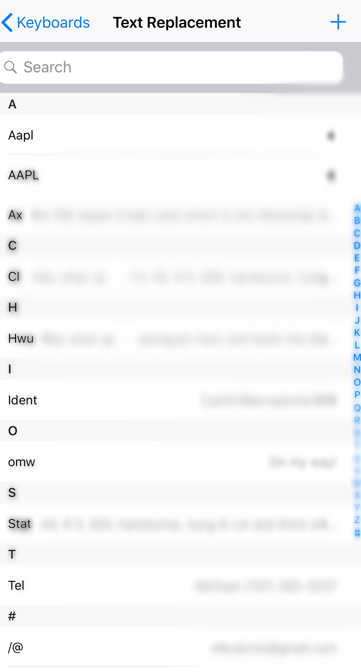 text replacement ios 12