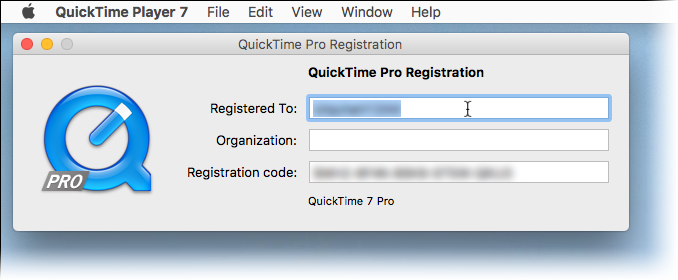 QuickTime Player 7 menu﹥Registration﹥