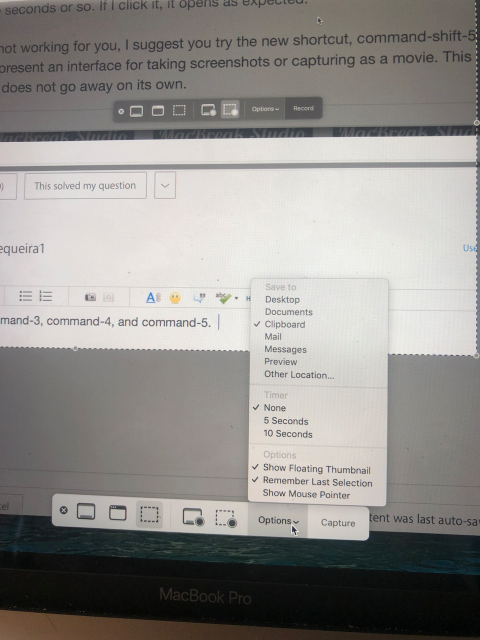 screenshot thumbnails with markups does not work usually in Mojave