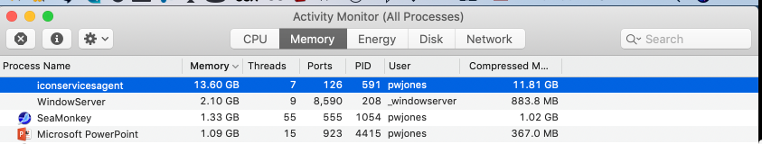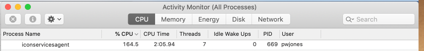 When checking the Activity Monitor, the process name "iconservicesagent" is hogging up all the RAM, i kill the process, but it still comes up and eats up all the RAM and machine is rendered useless!