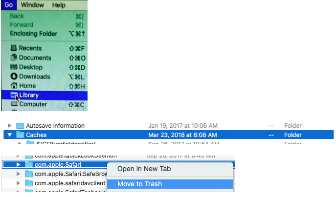 Right click the Caches.db file and select "Move To Trash”.