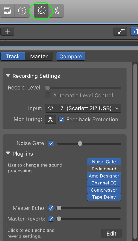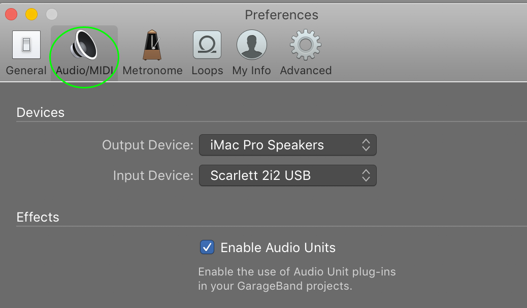 I am using a 2017 iMac running MacOS Mojave 10.14 with Garage Band 10.3.1