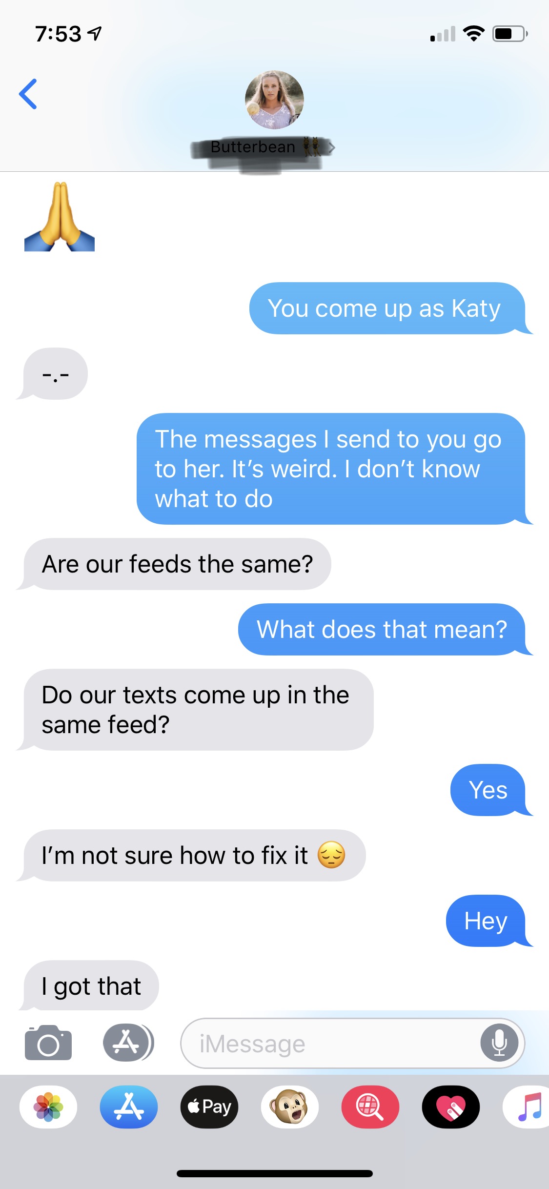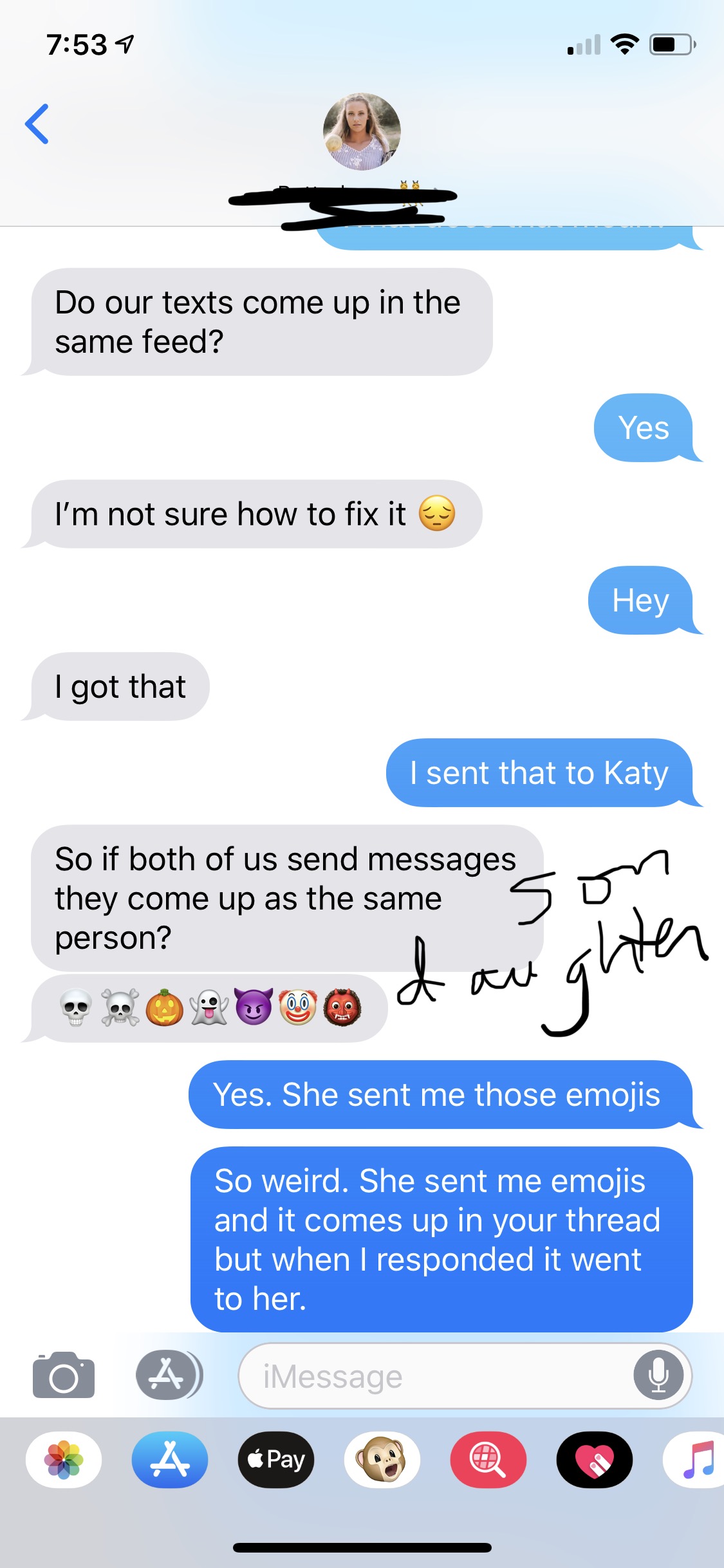 just the other day, my iPhone X started merging text messages from my son and daughter in the same thread. If i specifically choose one from contacts, it goes to the other. I have checked settings and they have checked messaging settings. I have cleared messages and restarted conversations but still have the same problem. I cannot seem to get the phone to recognize them as separate people again and cannot find any problems like this.