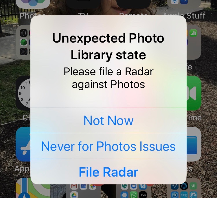 unexpected photo library state file radar on iphone