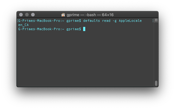 To change the locale with the defaults command, I quit the preferences app and enter the defaults command :