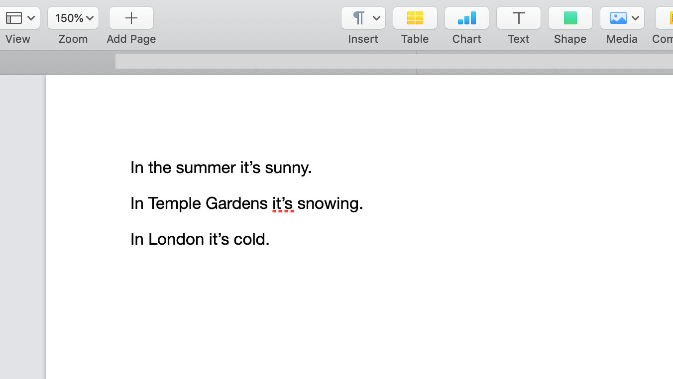 I'm experiencing this issue too, since upgrading to macOS Mojave. I use Pages every day — with spelling but not grammar checking on — and started noticing words being flagged that weren't before upgrading. I found that 'correcting' the grammar by adding a comma after Temple Gardens made the highlight go. But if I delete the comma, the highlight doesn't come back. Seems pretty inconsistent to me. And I might want to flout the comma rules in certain places, so this shouldn't be a red flag like it's a definite mistake — very confusing and annoying.