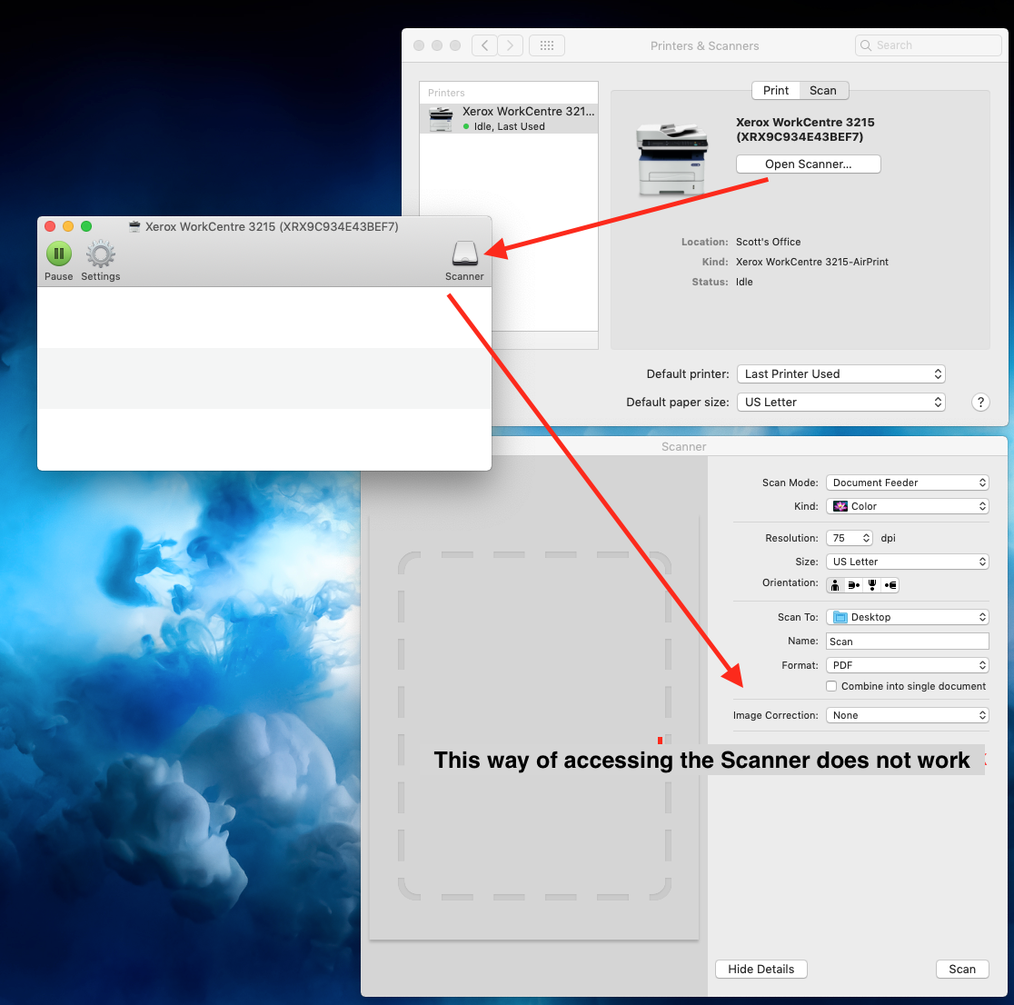 I have both a CanonimageCLASS D530 and a Xerox WorkCentre 3215. The Canon no longer has the Scanner utility since the Mojave upgrade and the Xerox Scanning software crashes when you try to scan anything in any format. All this since the Mojave upgrade. The Xerox does a scan to PDF but it crashes after the first page and creates an unreadable PDF in both Preview and Acrobat Reader.