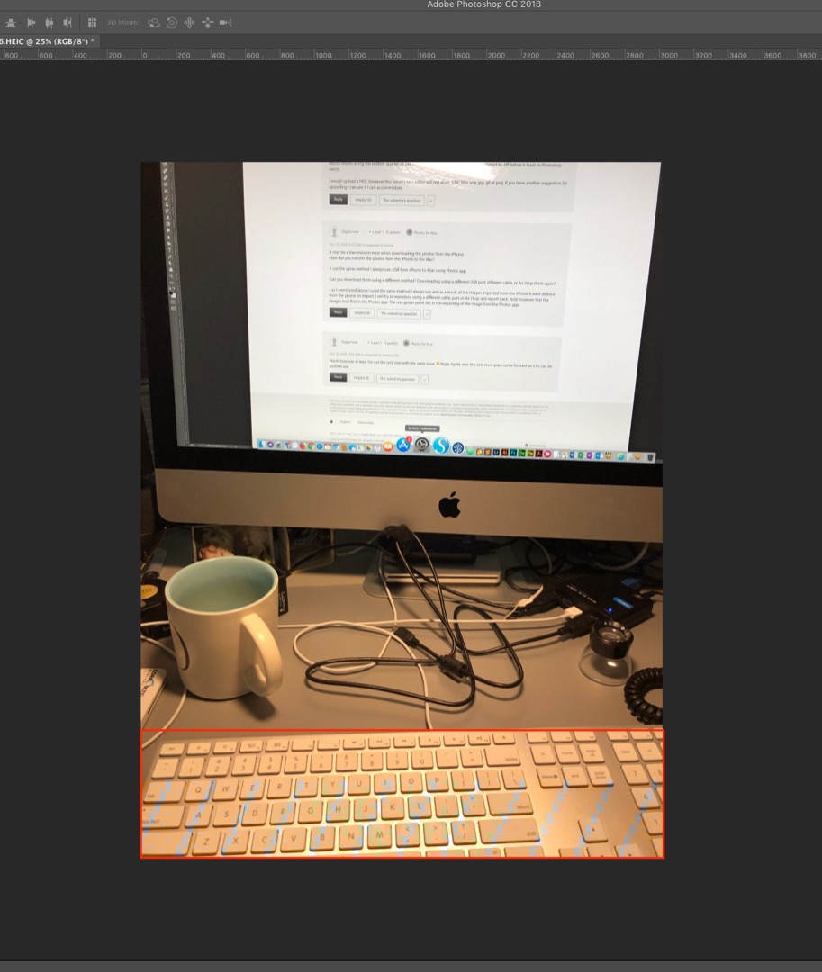 USB: changed port from my USB hub to direct connect to the back of my iMac results as follows. Export unmodified original for 1 photo....same results HEIC is corrupted along the bottom of the image as shown in the my original post screen shot above. Export 1 Photo option to jpeg and the image shows corruption same as before.
