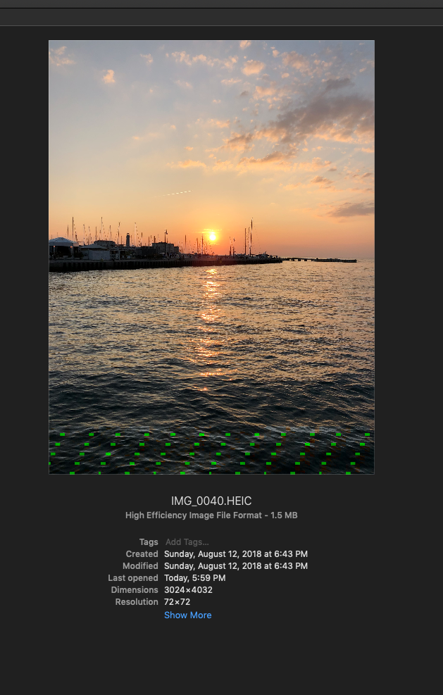The issue I'm having is that the HEIC images when exported are corrupted. The show green pixel boxes either on the lower half or in some cases the side of the exported images.