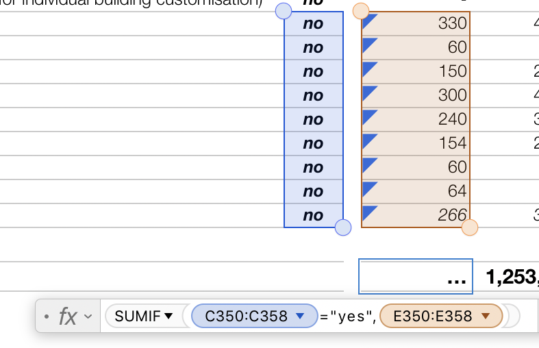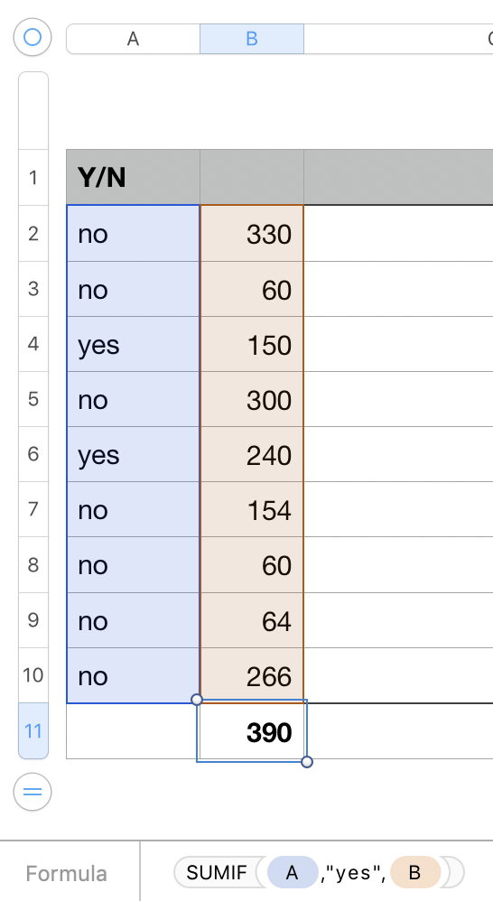 It's not clear from your screenshot which columns you are working with, so I've assumed the numbers you want to sum are in column B and that the yes/no column is column A. You would replace the A and B to fit your setup.