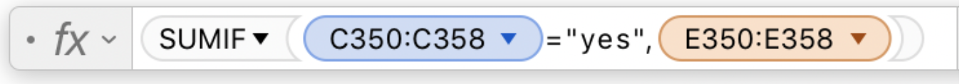 It's not clear from your screenshot which columns you are working with, so I've assumed the numbers you want to sum are in column B and that the yes/no column is column A. You would replace the A and B to fit your setup.