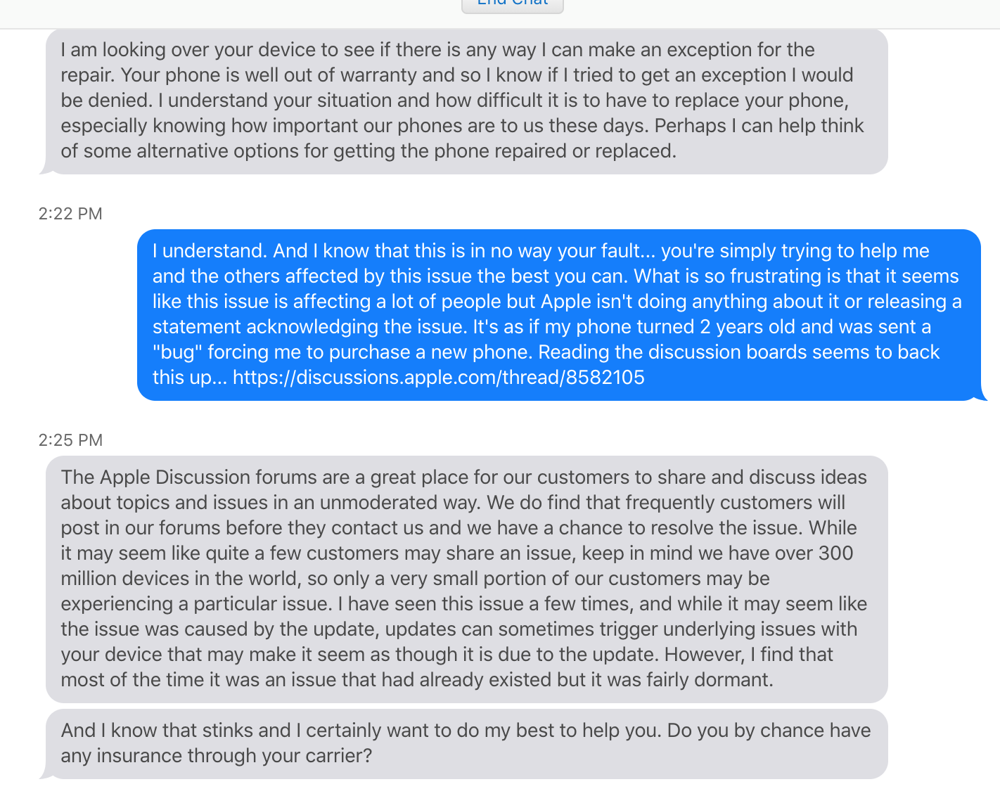 then again I set up an appt today with Apple store, I was told by another customer support person that I have a motherboard issue which they cannot sort out. They told me I am out of warranty by 5 months and they won’t consider. I have to buy a new one. I was so disheartened as it’s not my mistake because Apple has a glitch they couldn’t fix it!!