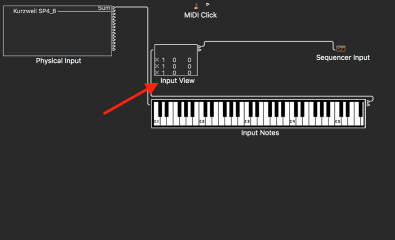 No worries, Pete. What do you see in Input View when you press a key on the SP-4? Does it display the incoming notes?