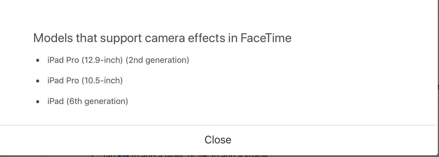 I understand what you are saying, but I am not talking about FaceTime. I am talking about iMessage filters comic book, ink, and water color. You may be right about the iPhone 6s plus, but not about the ipad pro 9.5 inch. My wife have the same iPad, one has them and one does not. I do appreciate all your help.
