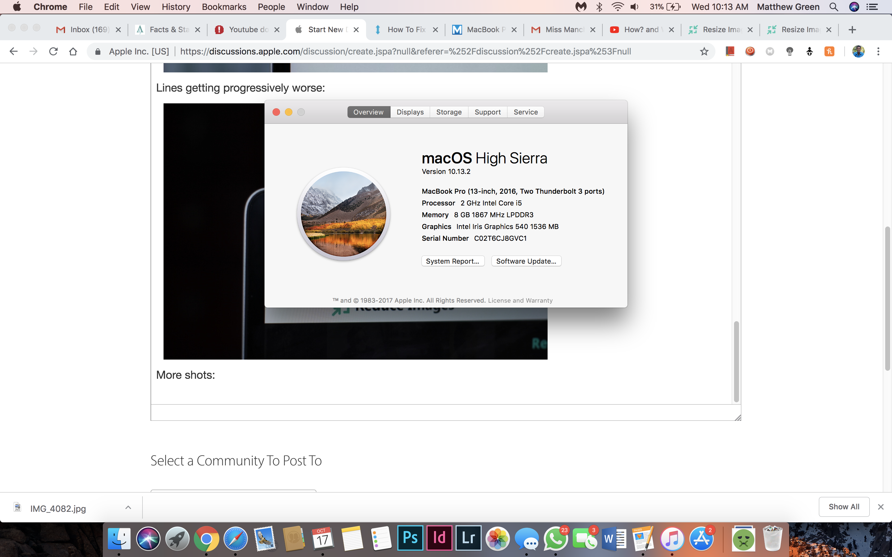 MacBook Pro (13-inch, Late 2016, 2 TBT3), macOS High Sierra (10.13.2), Less than 1 year use