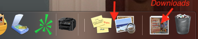 ...The red arrow for Downloads folder should be that area. Right now, the Downloads folder is next to the trash icon.