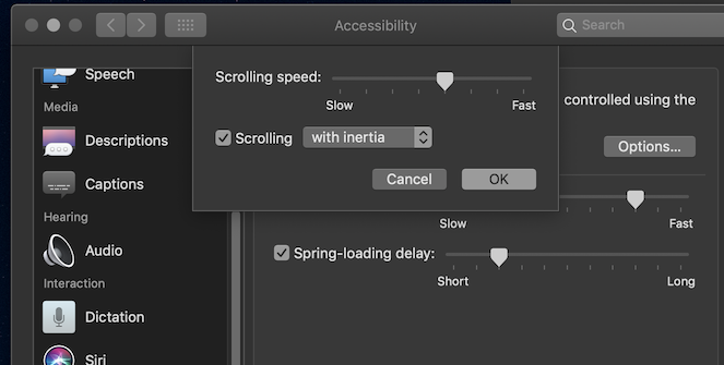 I would love to kill the acceleration of the mouse scroll speed. Found a way to get rid of the annoying cursor acceleration but not for the scroll speed. What can I do to make it work. Using Mojave right now and a Logitech Mouse (MX Master 2S).