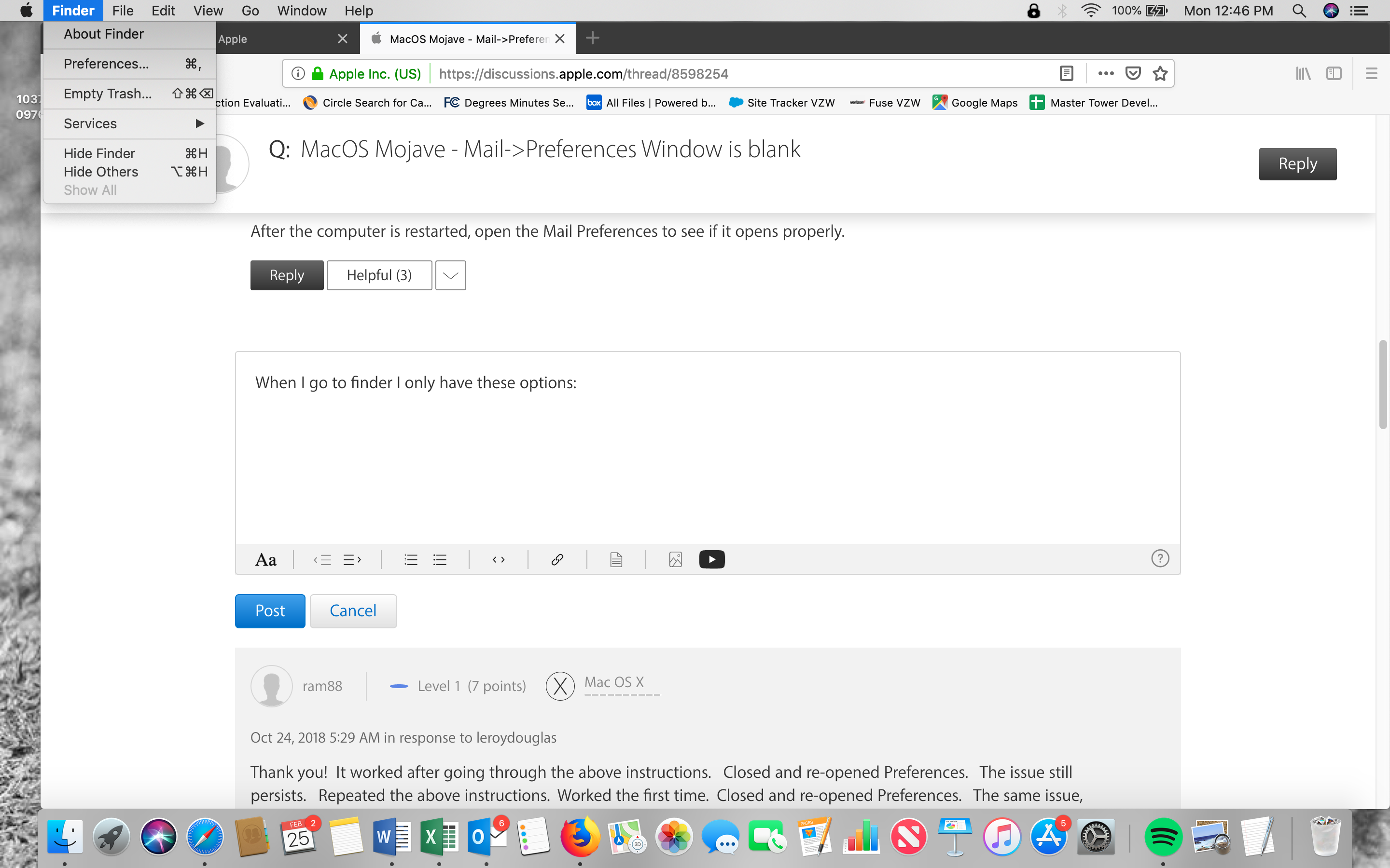 I recently upgraded to MacOS Mojave on my MacBook Pro (13-inch, Late 2013). When I try to change my Preference in the Mail app (Mail -> Preferences), the Preferences window opens but is completely blank. I cannot see any menus, buttons or options. I was able to change my preferences the day after the upgrade. The Preferences window went blank after that. I cannot change any preferences in my Mail app. I've tried restarting the Mail App and even my MacBook Pro several times. The issue persists. What is the best way to resolve this issue?