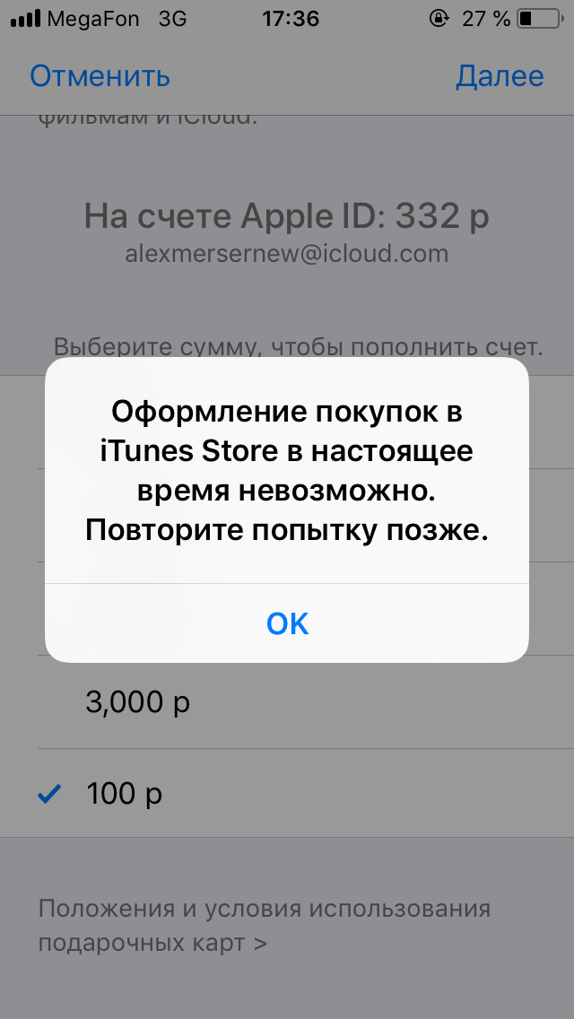 why can't I top up the Apple ID balance?