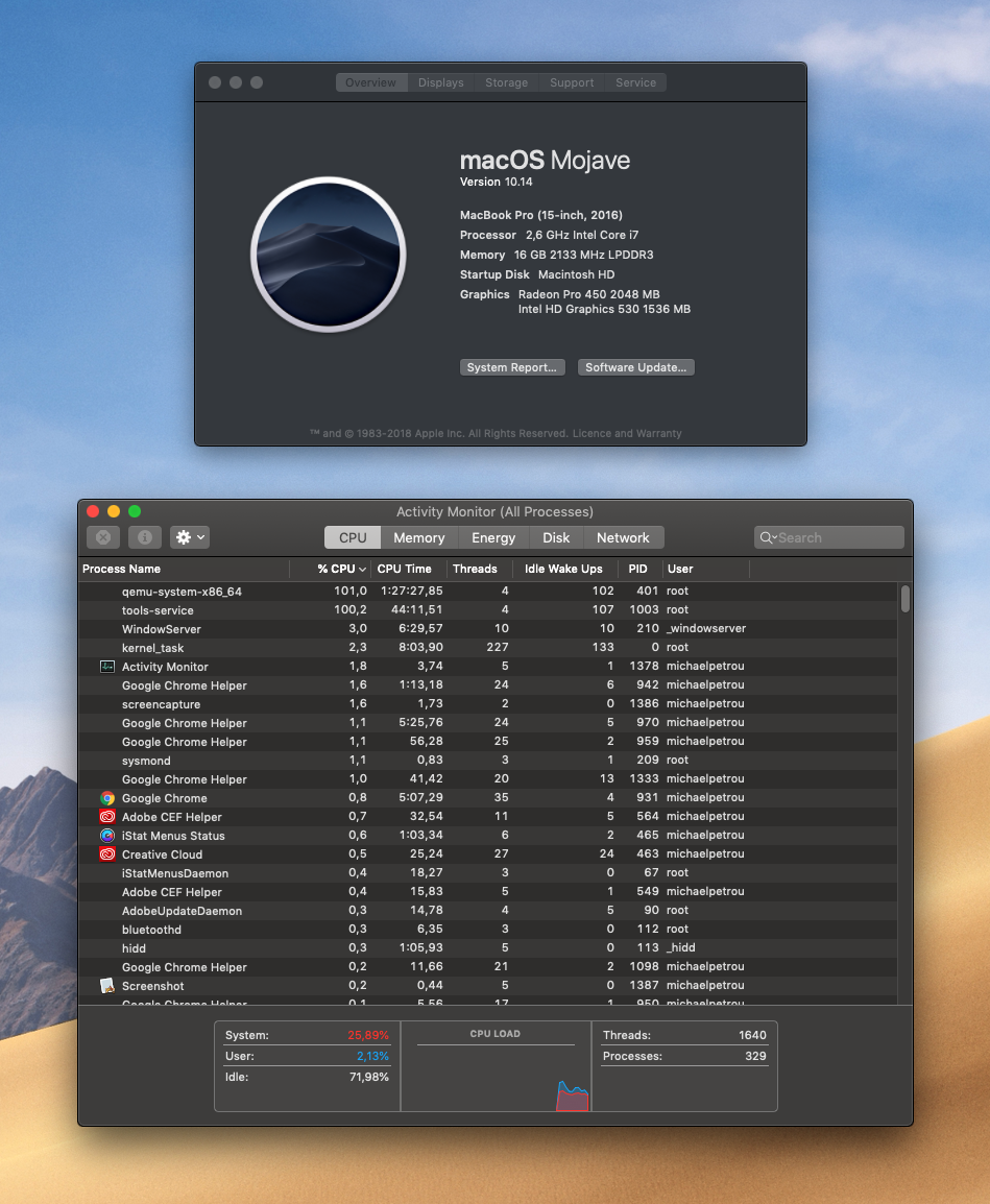 1. Launch Activity Monitor and locate "qemu-system-x86_64"
