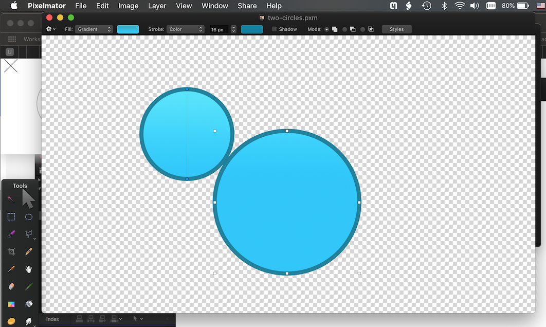 2) Add a black background by creating a new layer and using the paint-bucket tool to fill it completely. Move it below in the layer order so you see the white circles again.