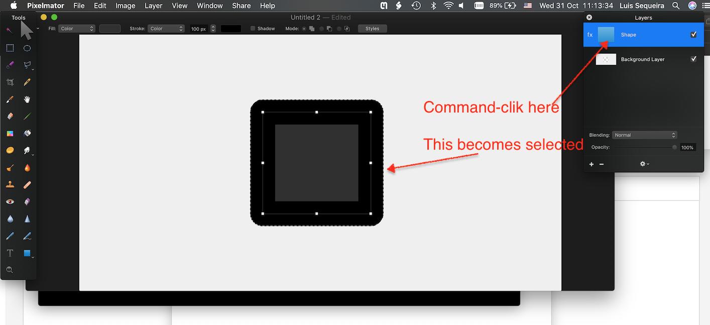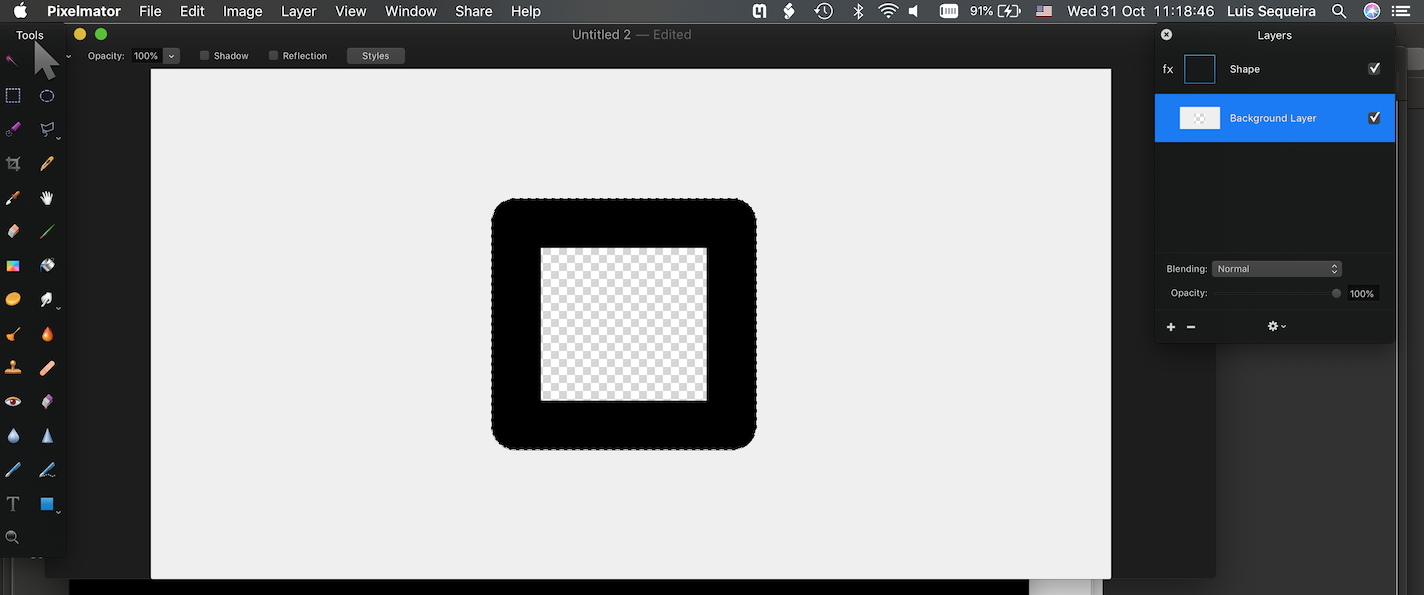 4) Select the black layer in the list and press DELETE. This creates the "hole" in the black layer