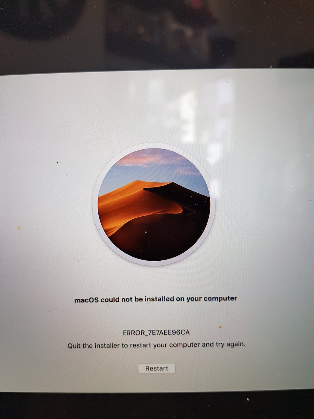I have the same problem - ERROR_7E7AEE96CA - I had also upgraded to Mojave but had to revert to 10.13.6 via a SuperDuper bootable clone restore.