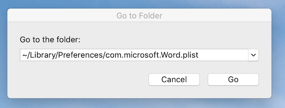 3. Go to ~/Library/Preferences, locate the files com.microsoft.Word.plist and com.microsoft.Office.plist, move them to the Desktop (Word will rebuild them).
