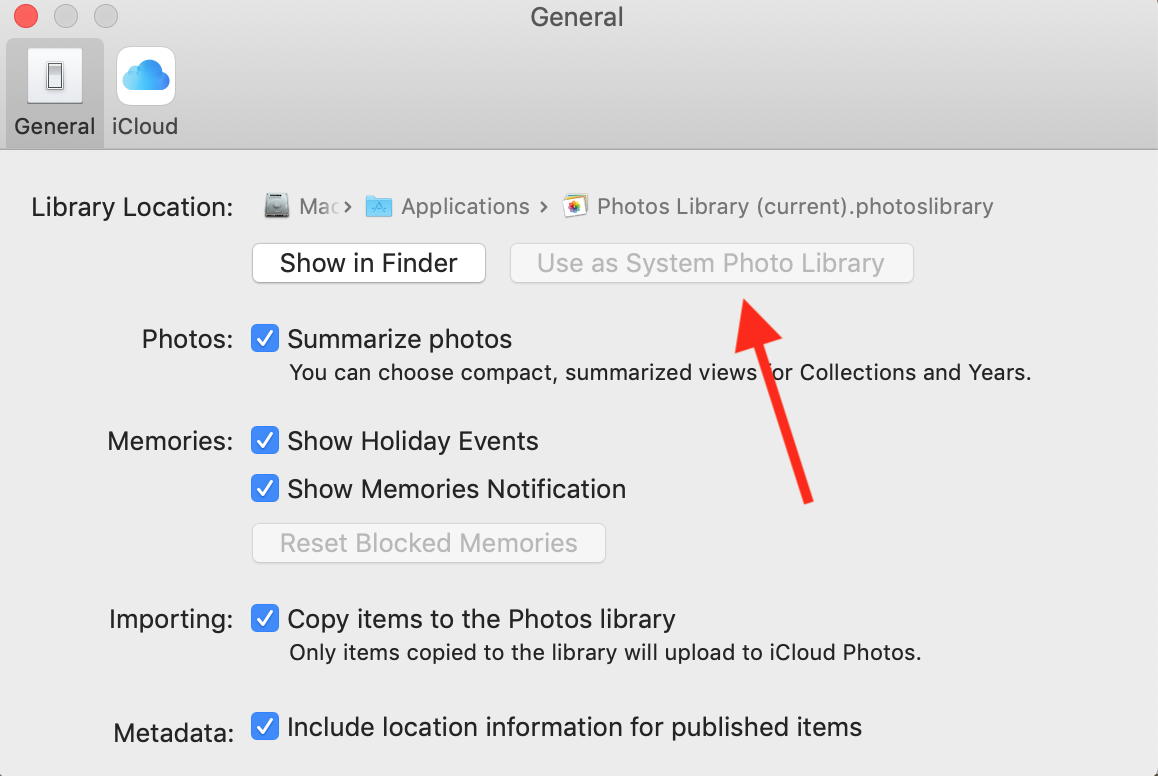 I am unable to review/select from all of my photos in the Photos app. I tried creating a new library, but it appears gray in the list. What am I missing? I'm using iMovie 10.1.6