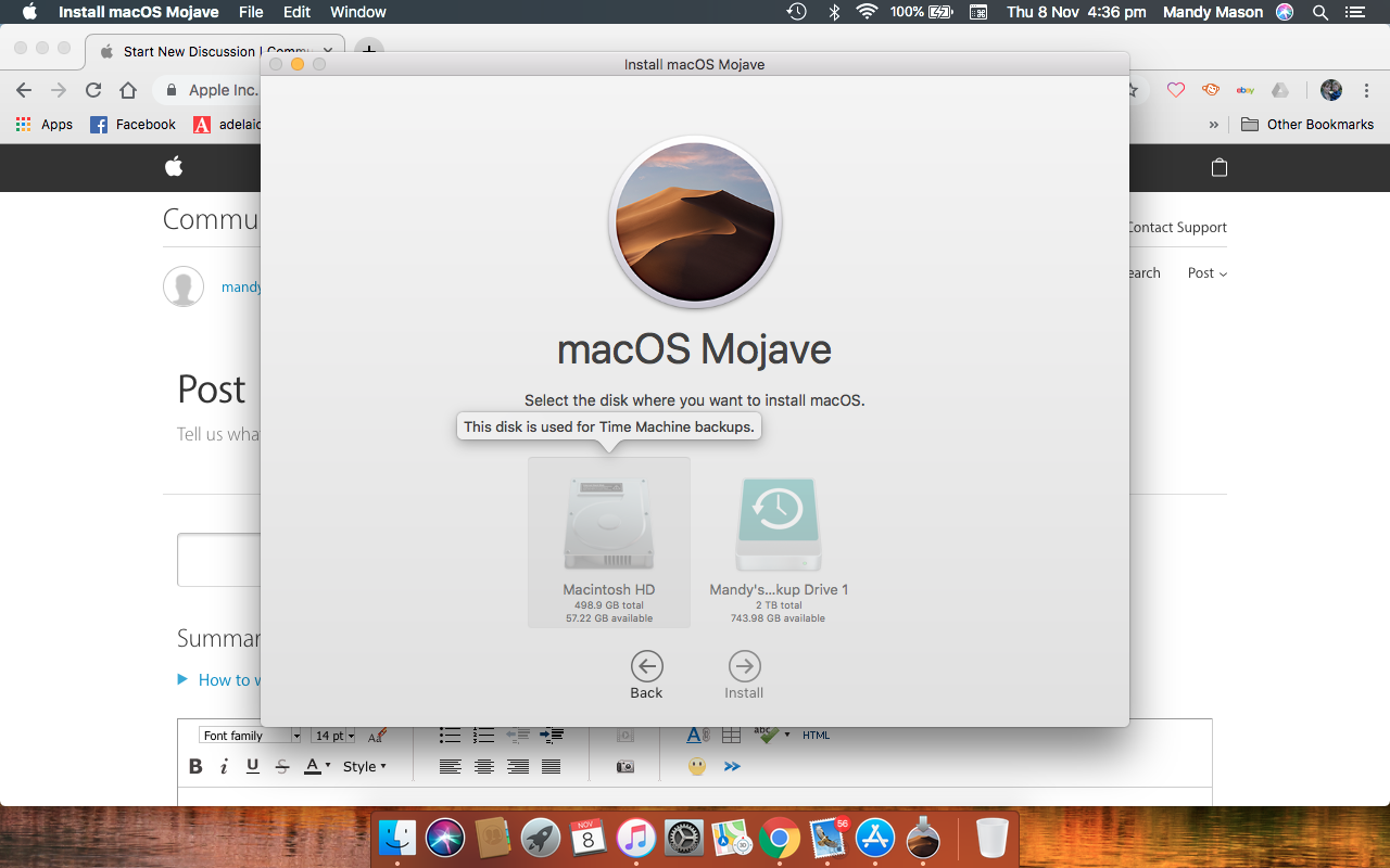 Help please! I am unable to download Mojave as I can't install it to either of my disks.