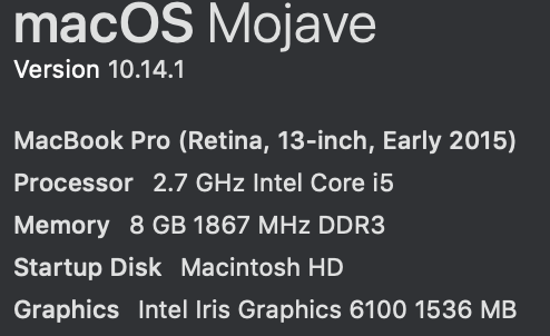 MacBook Air (13-inch, Early 2015), macOS Mojave (10.14.1)